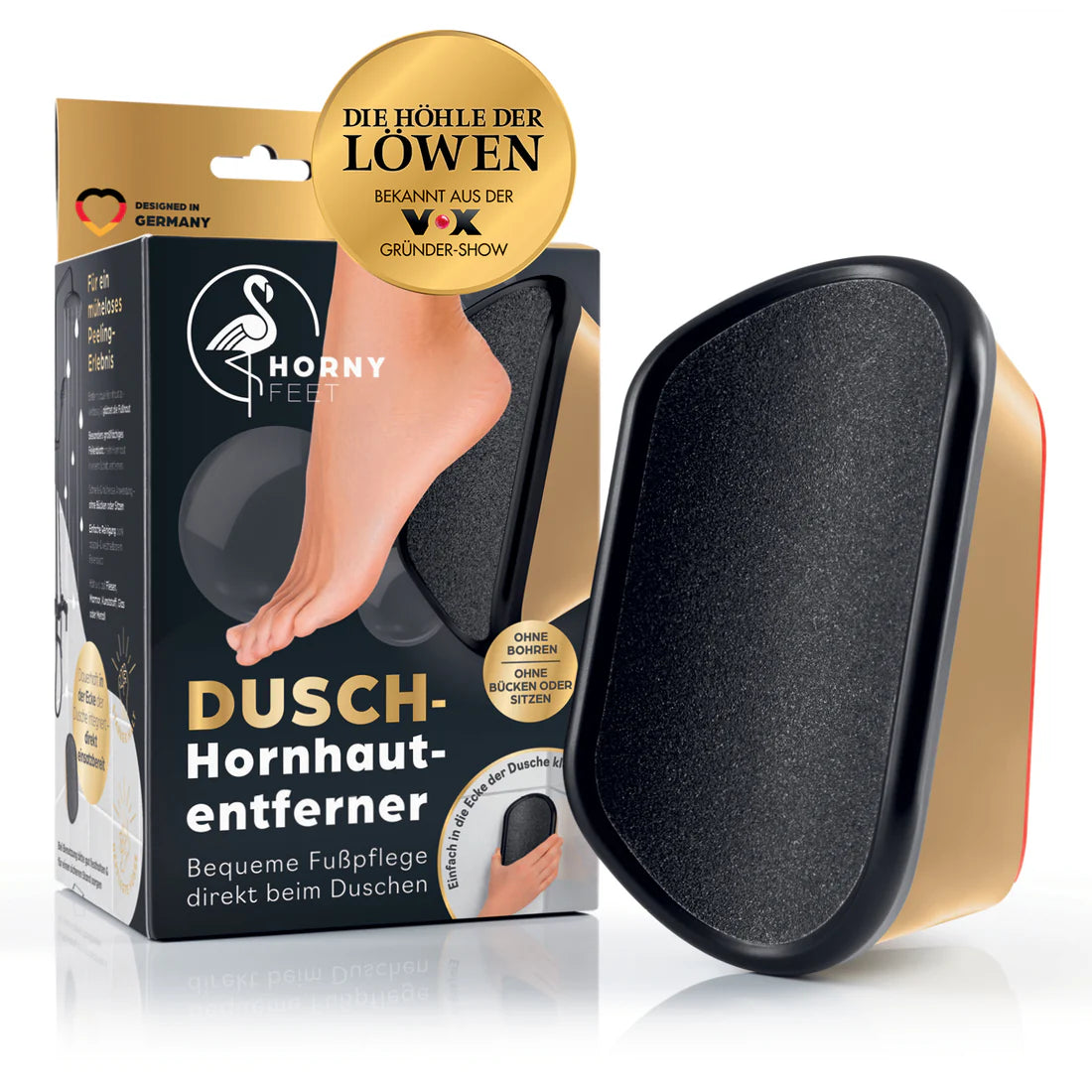 Einfache Fußpflege ganz nebenbei. Bequeme Hornhautentfernung direkt beim Duschen – ohne Bücken oder Sitzen.