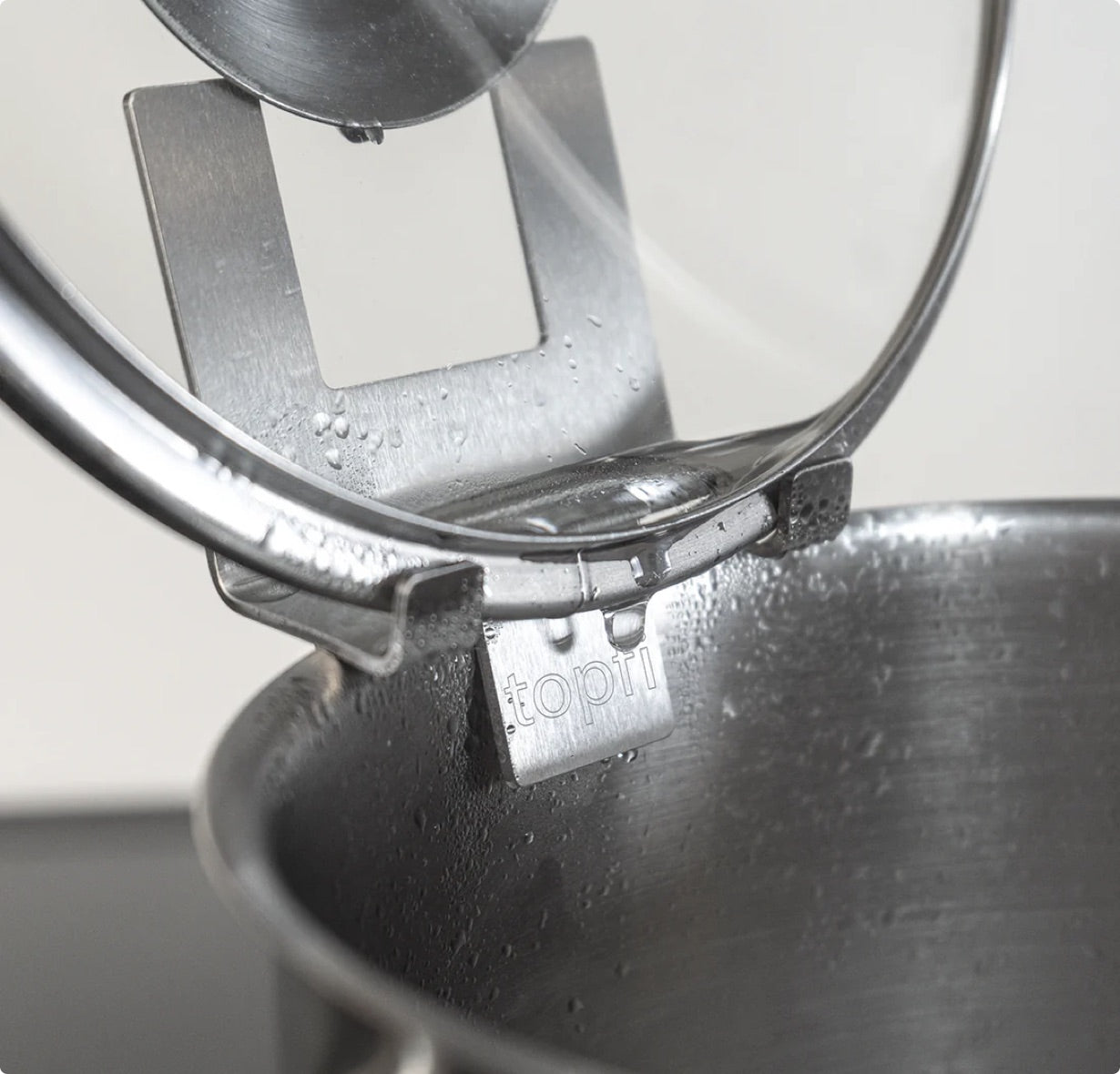 Kochen ganz ohne Flecken? Na klar! Mit topfi, dem Topfdeckelhalter. Endlich kein vom Deckel fließendes und tropfendes Wasser mehr auf der Arbeitsfläche und dem Herd. Dazu bietet der Deckelhalter einen zuverlässigen Überkochschutz. Das macht ihn zu deinem cleveren Organizer für eine sauberere Küche. So geht fleckenfreies und stressfreies Kochen! Mit topfi – deinem sauberen & praktischen Topfwächter.