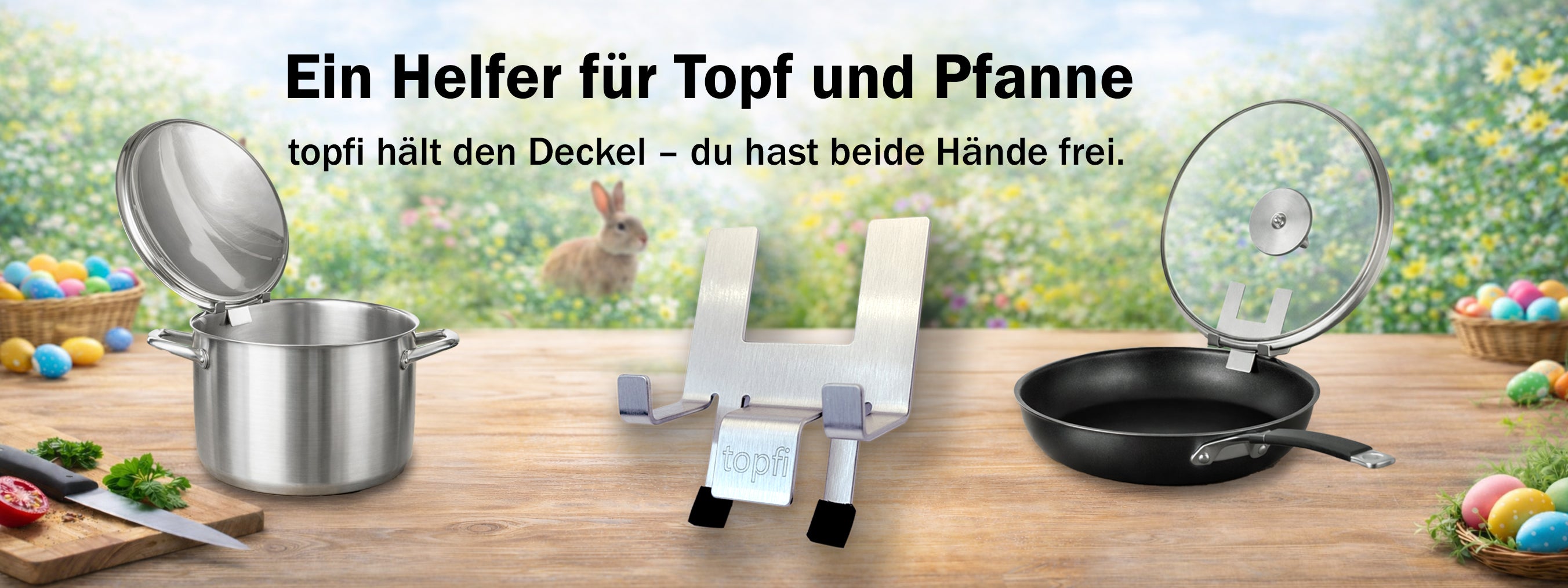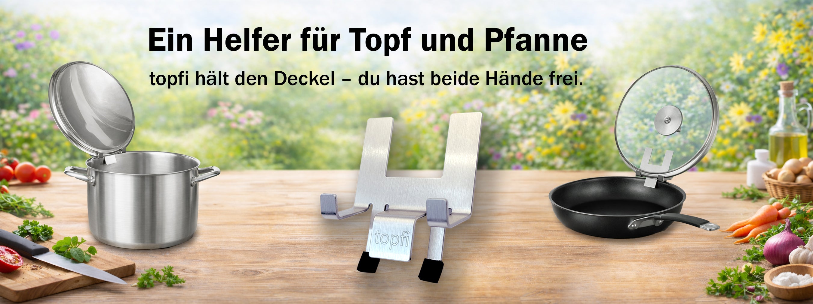 Hier kommt topfi, der Topfdeckelhalter – Deckelhalter & Überkochschutz in einem! Der Küchen Organizer für Küchenutensilien ist der nützliche Küchenhelfer & als Küchenzubehör unverzichtbar. Nutze den Topfdeckel Organizer als Küchenhelfer & Topfwächter. Die Halterung für Topfdeckel bietet Überlaufschutz & sorgt so für Sauberkeit. Jetzt den Halter für Topfdeckel bestellen & den Küchenalltag genießen!
